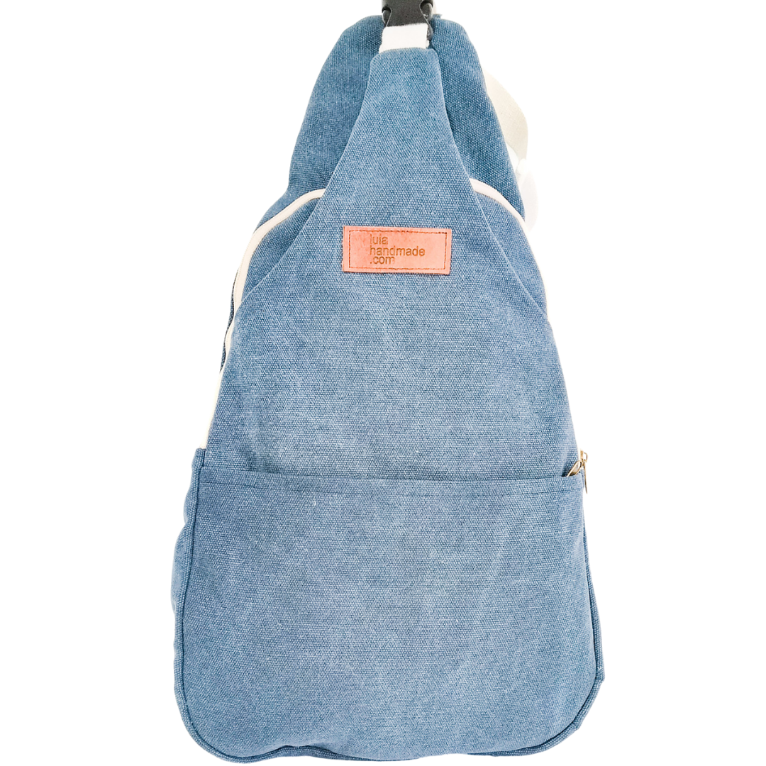 A versatile and stylish crossbody backpack made from durable cotton canvas and upcycled fabric as lining. Featuring multiple small pockets and a spacious main compartment, it’s perfect for everyday essentials while on adventures in town or nature. The adjustable sling ensures a comfortable fit, and the bag is available in a range of colors to suit any preference.